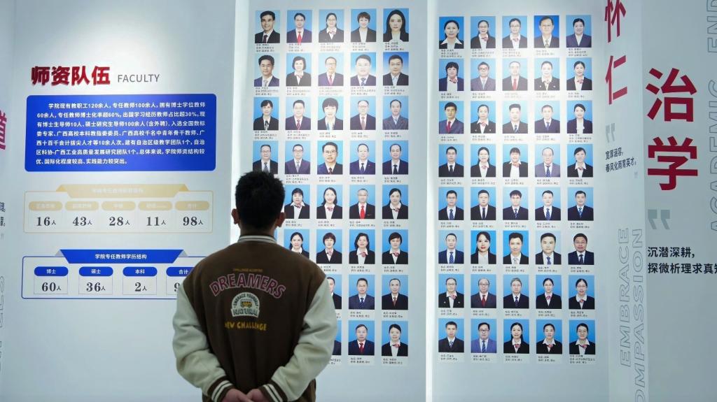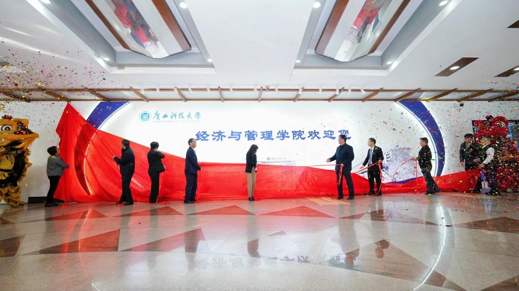 2025年12月6日下午,广西科技大学经济与管理学院院史展厅揭牌仪式暨校友座谈会在文昌校区第四教学楼隆重举行。学校党委常委、副校长邓朗妮,学院领导班子成员、退休教师代表、校友代表及在校师生代表近百人齐聚一堂,共叙情谊、展望未来。