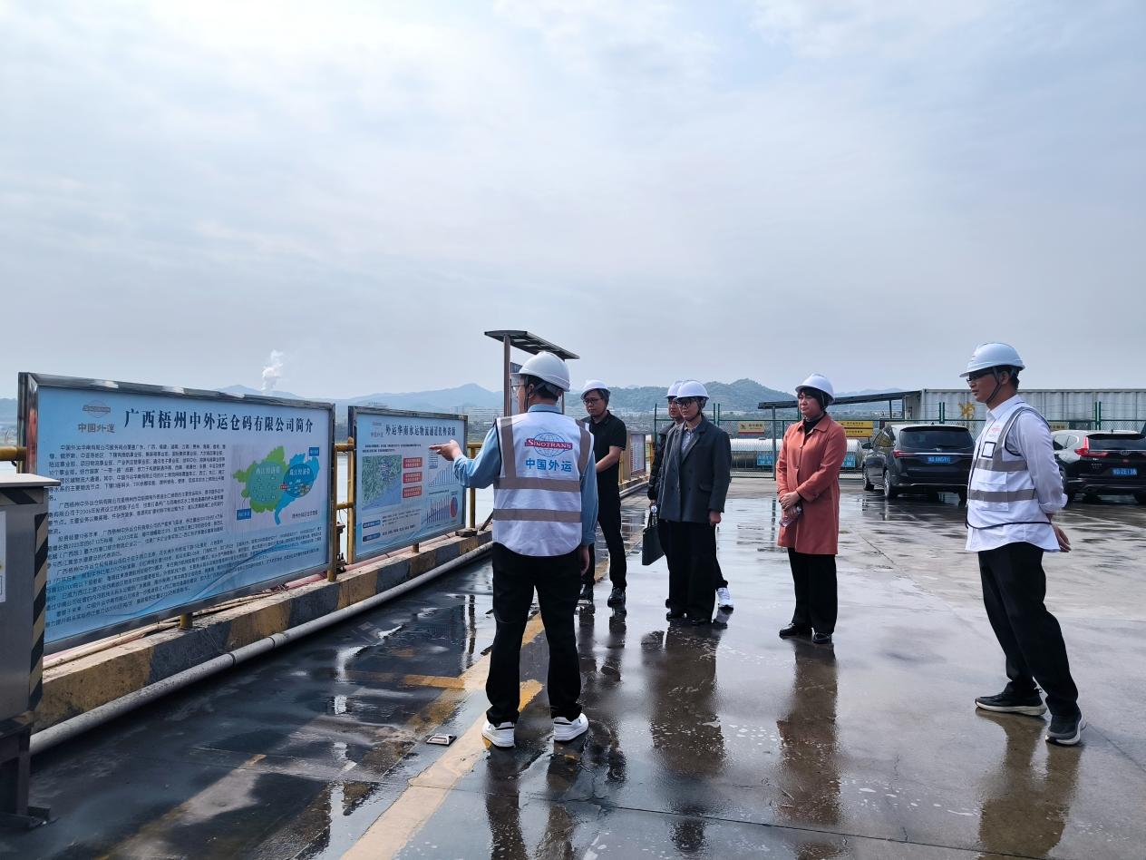 随后,调研组前往广西梧州中外运仓码有限公司考察交流。在公司相关负责人的陪同下,调研组首先实地参观了码头作业现场,详细了解企业生产运营、设施配置及业务开展情况。在座谈环节,公司负责人围绕企业历史沿革、发展规模、业务布局、取得成就及未来规划等方面,向调研组做了系统介绍。双方围绕毕业生人才引进、联合培养、实习实践基地建设等内容进行了深入交流,就进一步深化校企合作达成初步共识。