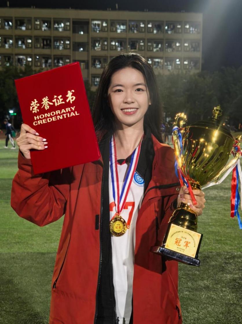 个人事迹:她以顽强拼搏驰骋赛场,用汗水浇灌荣耀。作为学院体育团团长和田径队主力队员,她带领团队在校级田径运动会中曾荣获女子跳高冠军、女子跨栏亚军、女子4×400米第四名等多项荣誉并获女子总分第一名,在院运会中揽获女子跳高、跳远、200米、4×100米四项第一名,多次被授予“优秀运动员”称号。加入校女子足球队并多次代表学校征战省市级赛事,助力团队拿下广西“千里杯”足球联赛亚军、连续两年问鼎柳州市大学生足球联赛冠军,获体育类省市级奖项4项、校级奖项17项、院级奖项10项。同时她也用实际行动践行着党员的奉献精神,累计志愿服务时长已达266小时,3次获评“优秀志愿者”。在学习上成绩优异,积极参加学科竞赛,曾获校“三好”学生、“优秀共青团干部”、“优秀共青团员”等多项荣誉称号。