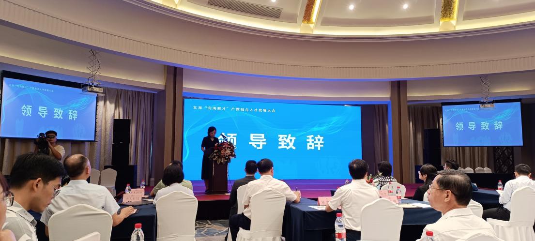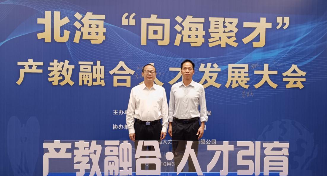10月31日上午,两人参加“向海聚才”产教融合人才发展大会,该大会由北海市人力资源和社会保障局主办,北海市政府相关职能部门领导,以及来自区内的28所高校代表和30家企业HR参加了会议。