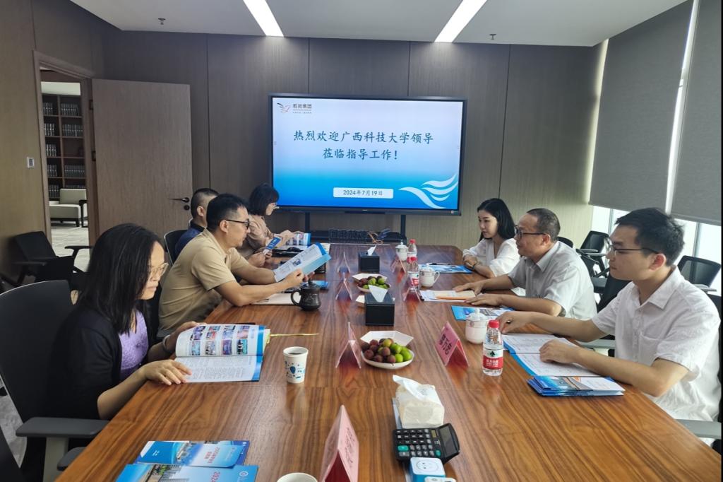 7月19日上午,走访广西恒熙教苑集团有限公司,与该公司总经理张琦、总政委莫国庆、副总经理张雯、客户经理成端良、人事主管莫金砖,就毕业生实习就业、教学科研等事宜进行沟通交流。