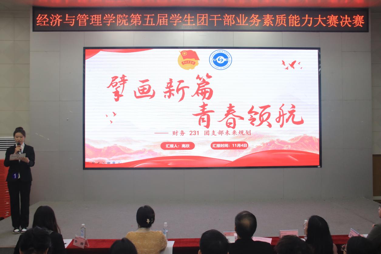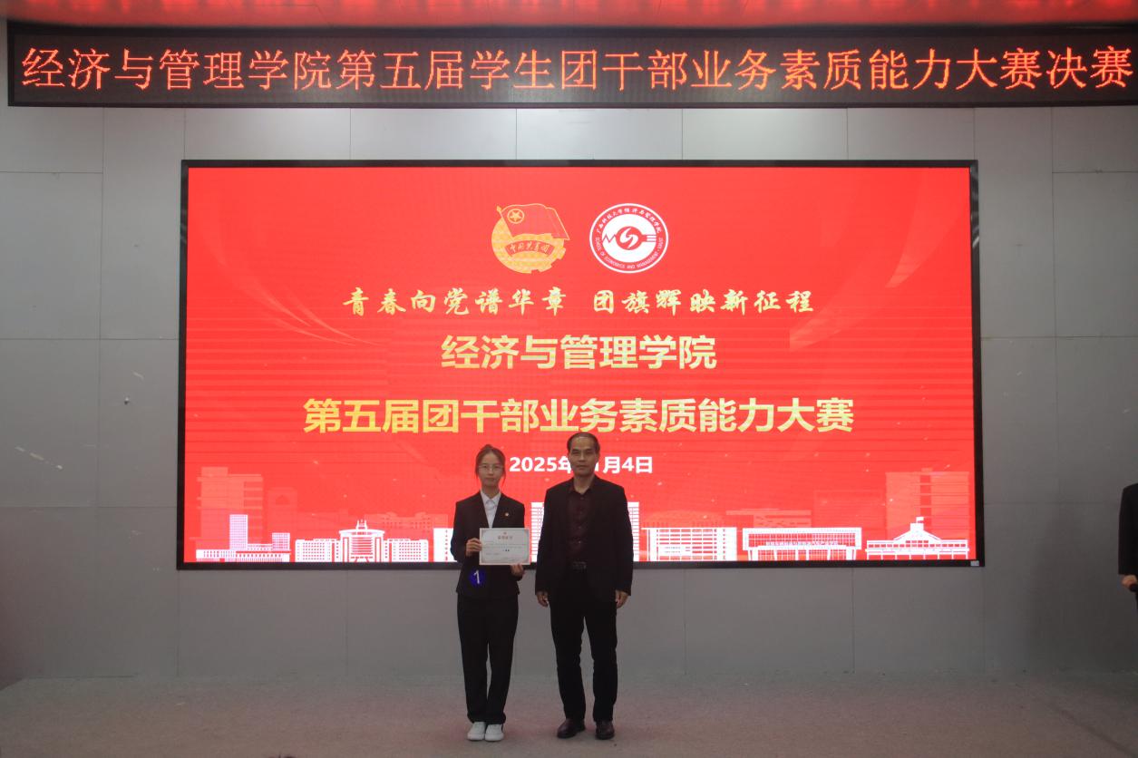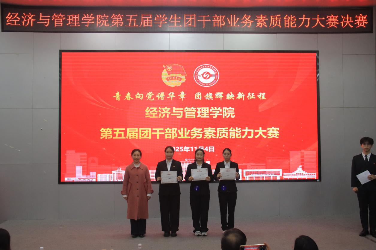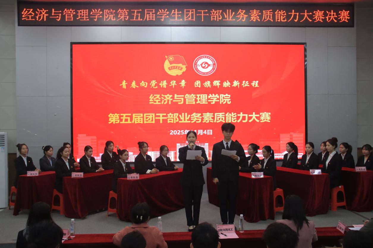 为进一步提升基层团组织建设质量与活力,经济与管理学院于11月4日在文昌校区图书馆报告厅举办第五届学生团干部业务素质能力大赛决赛。学院党委书记庞晓红出席,启迪数字学院学工办主任、团委书记庞乾静,经济与管理学院学工办主任、团委书记许璐,团委副书记李睿,辅导员王豪杰莅临现场担任评委。