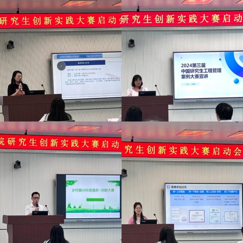 各赛事的负责老师分别对 “中国研究生工程管理案例大赛”“中国研究生‘双碳’创新与创意大赛”“中国研究生金融科技创新大赛”“中国研究生企业管理创新大赛”“中国研究生乡村振兴科技强农+创新大赛”进行了赛事宣讲。通过宣讲,使同学们进一步了解各赛事组织形式、评分标准、总体赛制、赛道设置、决赛流程、竞赛赛程等内容,以便更好地开展2024年研究生创新实践系列大赛。
