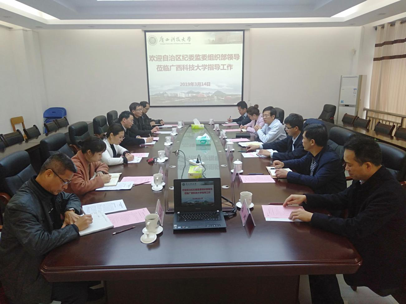 3月14日上午,自治区纪委监委调研组组长、自治区纪委监委组织部部长黄剑锋一行4人在柳州市纪委常委、监委委员覃家茂和柳州市纪委监委组织部部长蔡武的陪同下到我校开展纪检监察组织工作调研。校党委副书记、纪委书记张正义接待了调研组,纪委办、监察处、巡察办全体同志参加了调研座谈会。