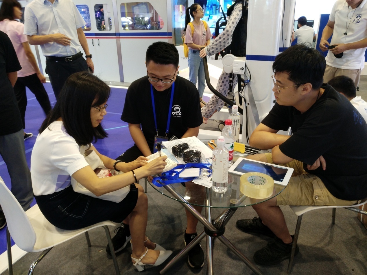 机器人中心新一代智能化人体下肢康复训练机器人应邀参展。本次参展的康复机器人较上一年度参展产品有了较大改进,囊括了移动平台、减重机构、外骨骼机构、障碍检测与避障等功能模块,操作人员可以借助手中的平板电脑实现对康复机器人各功能的操作,特别是基于外骨骼机构的人体下肢被动康复训练功能,一经开始展览,就受到了中老年人、康复医疗从业人员、媒体记者、在校大学生等各届人士的广泛关注,就机器人应用场合与受众人群、康复训练方式与效果、临床应用与产业化等关心的问题与中心成员进行了广泛的沟通和交流。同时,机器人中心还收到了越南教育与培训部的邀请,希望该款康复机器人能够参加2019年越南国际教育展览会。特别是受到中老年人和康复医学专业的在校大学生热情询问,中心成员都一一进行了解答,还有很多商业人士询问是否产业化,并且收到越南的展览邀请。此外,《广西日报》于5月22日对参展的康复机器人进行了报道。
