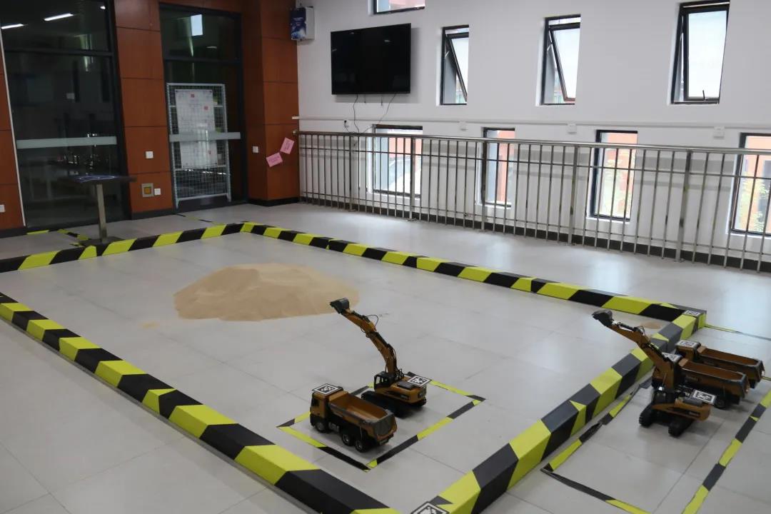 该实验室主要围绕广西柳工机械股份有限公司“全面国际化、全面解决方案、全面智能化”的发展战略,开展与工程机械相关的前瞻性技术研究以及基于学科交叉的复合型人才培养平台,整合了机械、车辆、控制、自动化、智能制造等专业的资源,搭建了一套智能化工程机械的半实物仿真平台,可为学生提供开展结构设计、传感技术、远程控制、数据传输与分析等提供学习、科研与验证平台,学院主要承担了软件系统的开发,涉及到视觉识别、传感数据采集、无线通信、远程控制、路径规划等,从流程上可以实现智能化施工的大部分工序。该实验室也是企业战略发展、前沿技术探究与学科(专业)建设相结合的典型代表。