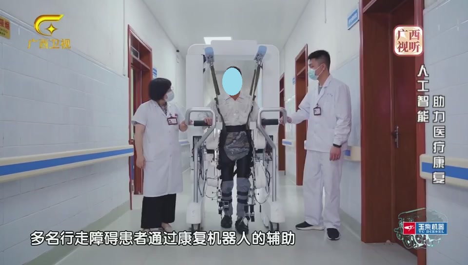 功能: 在患者进行步态训练时,机器人减重装置能够提供减重支持,帮助患者克服重力的影响,减轻下肢负担,并且能够提供多种训练模式,包括直线行走、转弯等功能,实现在真实行走环境中开展康复训练。在机器人前端具备紧急停止和安全防护机制,如遇到障碍物或异常情况时能够自动停止,确保患者安全。目前该康复机器人已在广西科技大学第一附属医院完成了临床应用,获批国家二类医疗器械注册证和生产许可证。