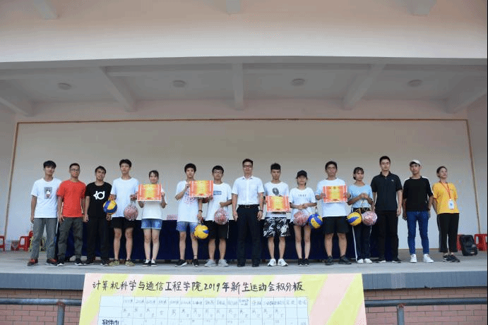 下午三点,在学校田径场隆重举办了广西科技大学计算机科学与通信工程学院2019级新生运动闭幕式,学院党委副书记、纪委书记黄剑华,团委书记黄洪雷,19届优秀毕业生刘和平,现任团委学生会主席团成员以及2019级全体新生同学出席了闭幕式,领导老师们为取得团体总分前四名班集体和各类各项竞赛前八名运动员颁奖。