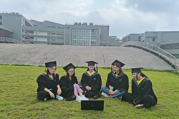 毕业生观看毕业典礼直播