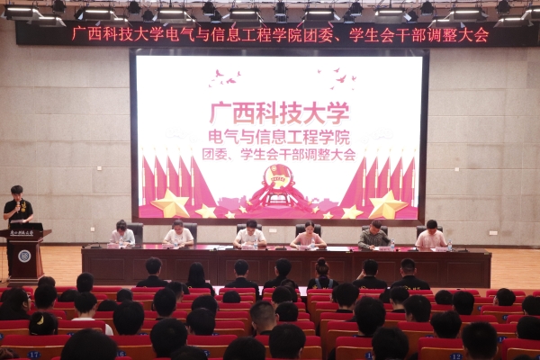 6月30日晚,电气学院团委、学生会干部调整大会在柳东校区多功能报告厅召开,学院党委副书记、纪委书记蒋智华,团委书记刘阿娜以及全体辅导员出席,团委、学生会全体成员参加大会。