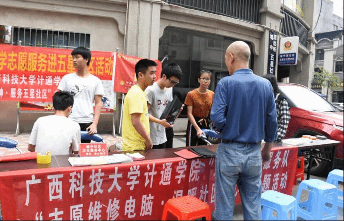 5月11日上午,计通学院在五星社区开展了以“弘扬志愿精神·服务五星社区”为主题的党日活动。此次活动由计通学院学生党员和“及时雨”IT服务队志愿者共同参与。活动内容主要包括维修电脑、软件安装、系统升级、硬件除灰等,同时提供免费上门维修服务。