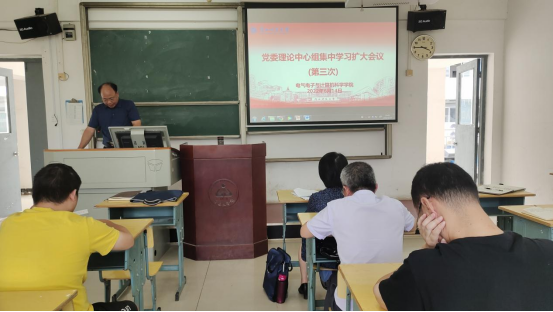 6月14日下午,电计学院在东环校区5北403教室组织召开党委理论学习中心组2022年第三次学习会扩大会议。学院党委委员、专职组织员、党政办主任、系主任以及全体党支部书记参加会议。学习会由党委书记叶雁冰主持。