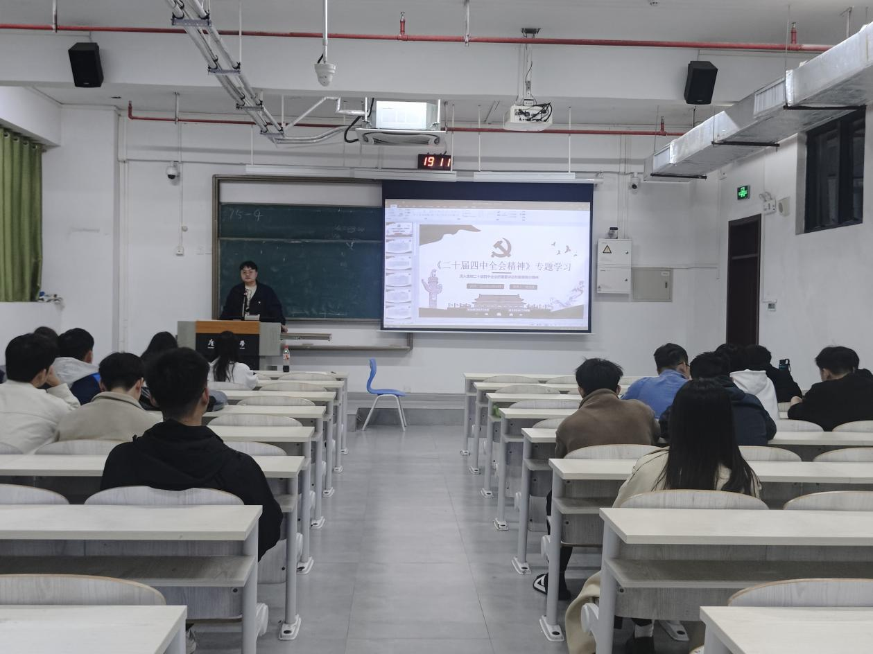 2025年11月22日晚19时,自动化学院人工智能党支部全体党员在T3-201教室召开专题学习会,集中学习贯彻党的二十届四中全会精神。此次专题学习会由党支部书记曲信儒主持。