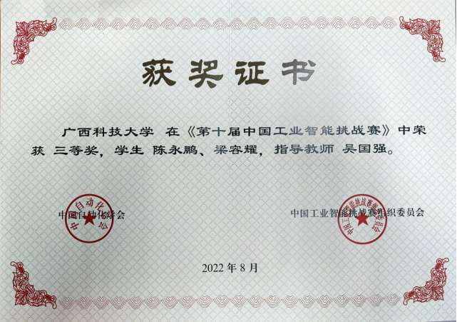2022年8月下旬至9月初,第十届中国工业智能挑战赛以“线下+线上”结合的方式举行,大赛吸引上海交通大学、浙江大学、哈尔滨工业大学、北京理工大学等300多支高校代表队参加。我校自动化学院积极筹备,在机器人、自动化、测控等专业学生中组织选拔,在专业指导教师的带领下认真备赛,最终在赛项中获得二等奖一项、三等奖一项。