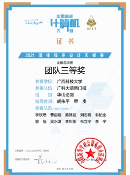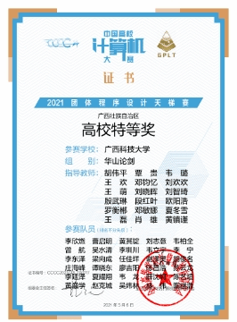 4月24日下午,历时三小时的线上角逐,由计通学院、启迪学院、威爱学院和理学院学子组成的广西科技大学战队,在“第六届中国高校计算机大赛—团体程序设计天梯赛”全国总决赛中,取得历史性突破,喜摘全国团队三等奖,并连续三年稳居广西赛区华山论剑组高校团体总分第一名。