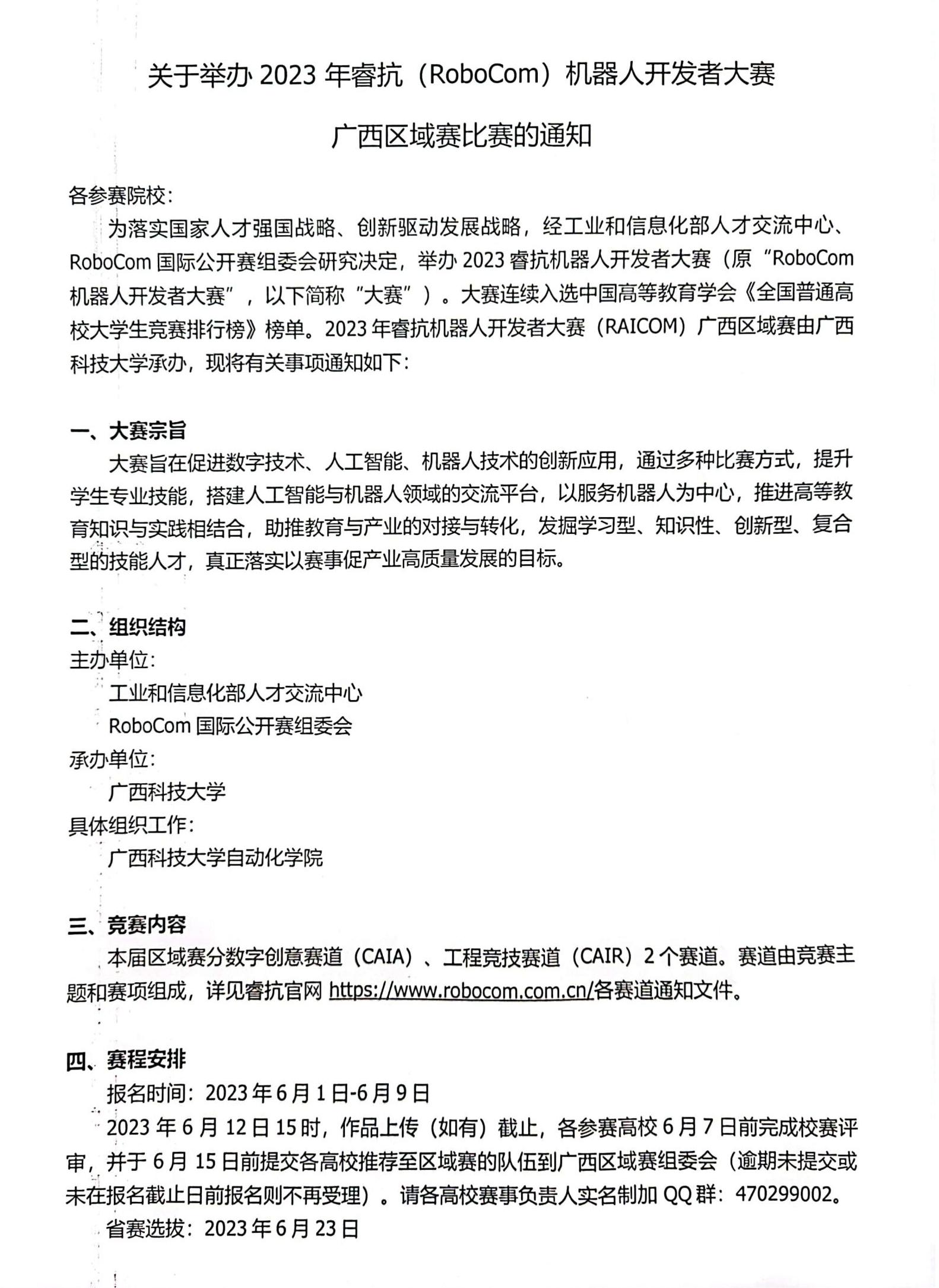 附件:关于举办2023年睿抗(RoboCom)机器人开发者大赛广西区域赛比赛的通知