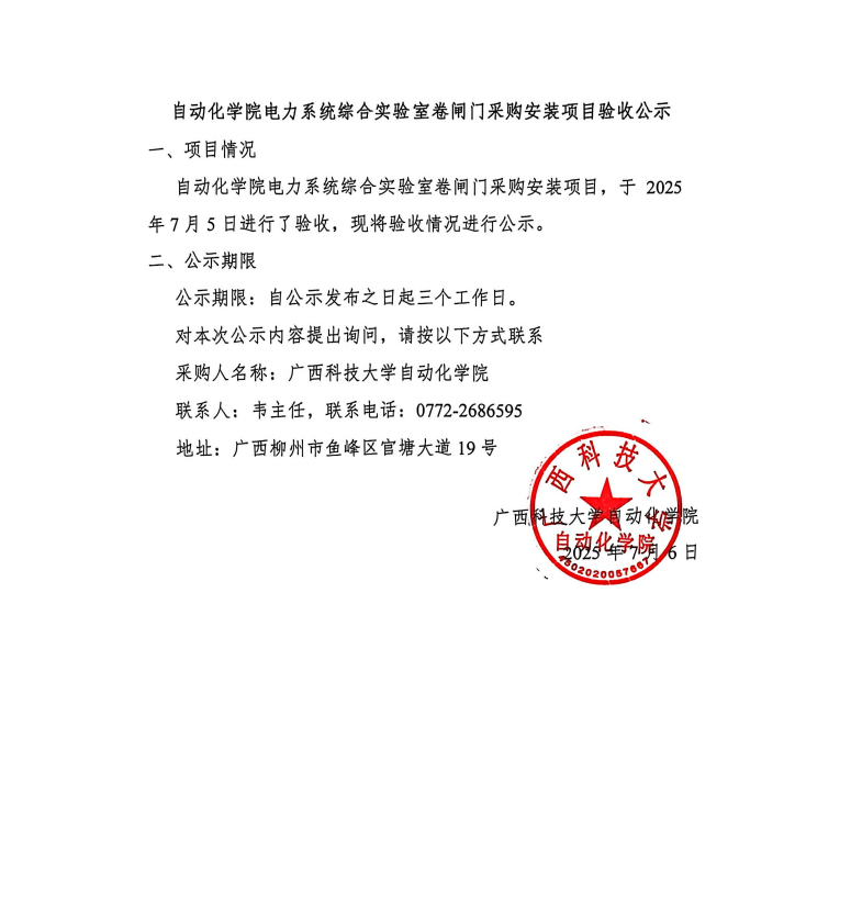 自动化学院电力系统综合实验室卷闸门采购安装项目验收公示
