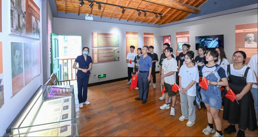 活动伊始,自动化学院党委书记彭勇和专职组织员肖学勤为2024年新接收的44名中共预备党员佩戴党员徽章,并在旧址场馆前举行了庄严的入党宣誓仪式。全体党员面向鲜红的党旗,重温入党誓词。