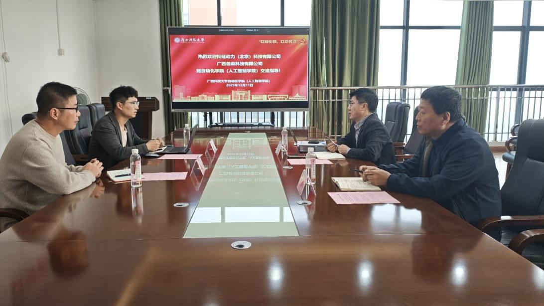 12月11日上午,松延动力(北京)科技有限公司广西区销售总监韦代文,广西善燊科技有限公司市场总监黄自宁一行到自动化学院(人工智能学院)调研,双方就具身智能机器人产学研协同育人合作在L2-514会议室开展交流座谈。学院院长刘胜永主持座谈会,王世刚老师参加座谈会。