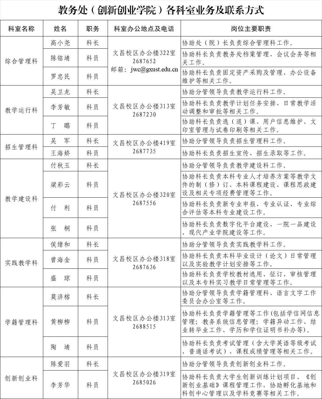 地址:广西柳州市城中区文昌路2号广西科技大学教务处 邮编:545006 电话:0772-2687652; 邮箱:jwc@gxust.edu.cn