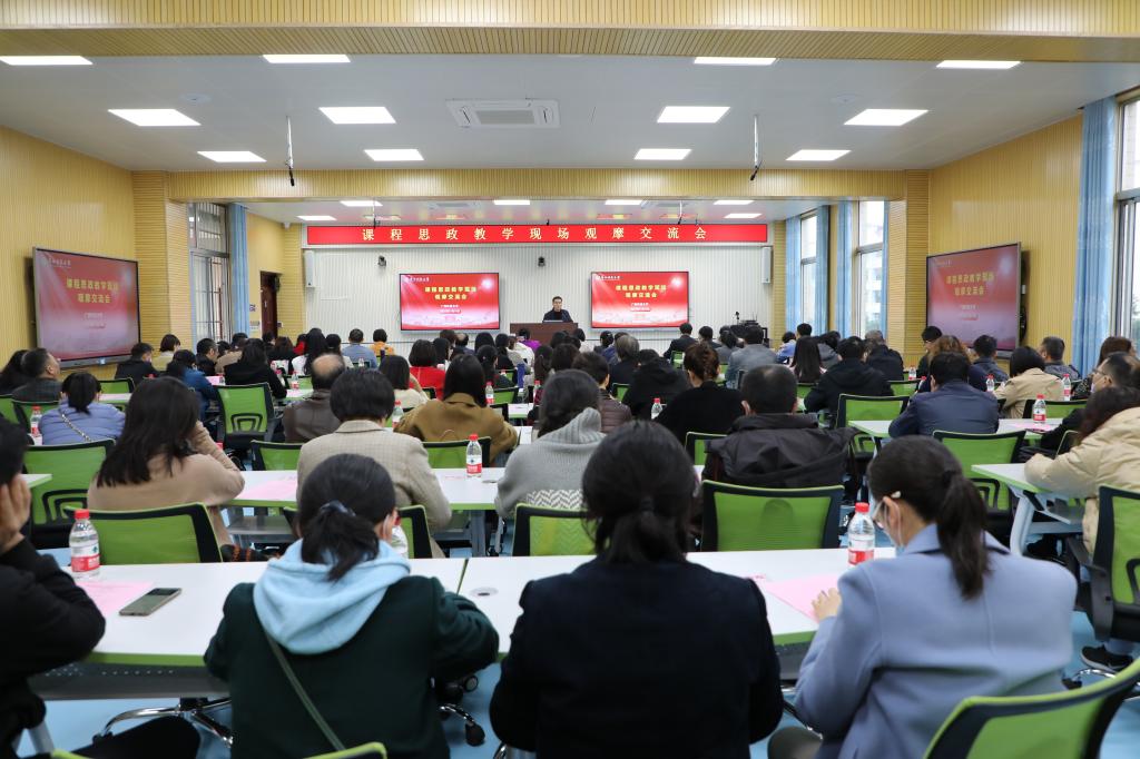 11月19日下午,学校课程思政教学现场观摩交流会在东环校区4教4D403经管学院智慧实训室召开。学校党委常委、副校长秦小云,教务处、评价中心负责人,各教学单位分管教学副院长(副主任)、教研室主任、课程思政教学示范项目负责人、课程思政教学专家等共110多人参加。会议由教务处处长秦福利主持。