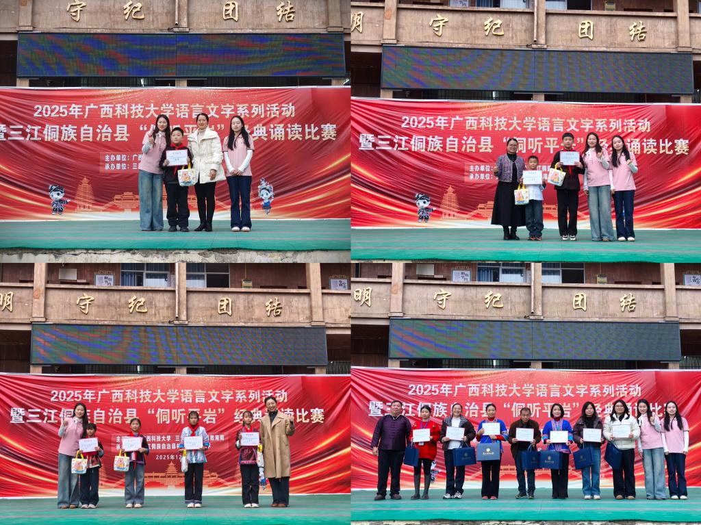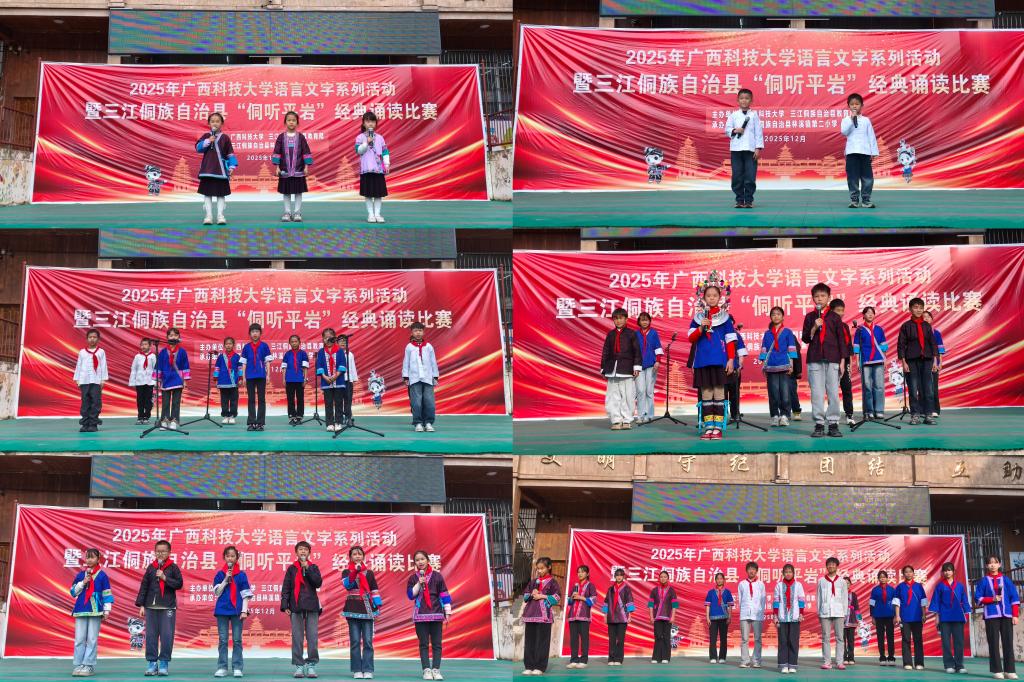 12月30日下午,广西科技大学语言文字工作委员会深入柳州市三江侗族自治县林溪镇平岩村,成功举办“2025年广西科技大学语言文字系列活动暨三江侗族自治县‘侗听平岩’经典诵读比赛”。活动在林溪镇第二小学开展,吸引当地师生踊跃参与。