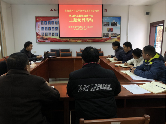 2020年11月30日上午,继续教育学院教工第一党支部全体党员在第一教学楼103党员活动室举行了“贯彻落实习近平总书记重要指示精神‘坚决制止餐饮浪费行为’”主题党日活动。