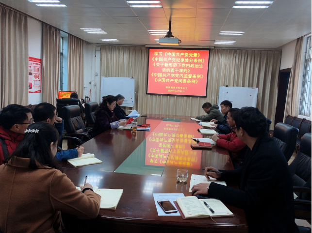 12月21日下午,继续教育学院党总支在第一教学楼209会议室开展党章党规专题学习,学院党总支书记黄殿芳主持,学院全体党员参加学习。