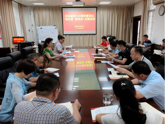 6月28日,继续教育学院在第一教学楼1-209会议室开展庆祝建党100周年暨深化“感党恩 跟党走”主题活动,学院全体党员参加了活动。活动由党总支书记黄殿芳主持。