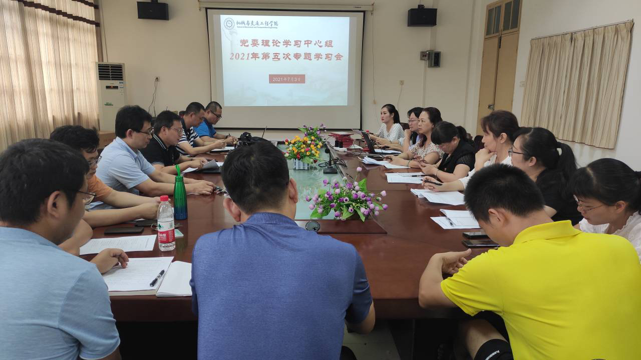 7月3日下午,机械与交通工程学院在东环校区工程中心3楼会议室以“汲取智慧力量,强化使命担当,开辟发展新局”为主题召开了党委理论学习中心组2021年第五次专题学习会,专题学习习近平总书记在庆祝中国共产党成立100周年大会上的重要讲话精神,会议由学院党委书记卢丽虹主持。学院党委理论学习中心组成员及党支部书记参加了学习会。