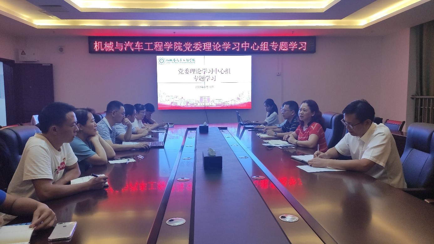 9月16日晚,机械与汽车工程学院在柳东校区L3-5楼会议室召开党委理论学习中心组2021年第六次学习会,学院党委理论学习中心组全体成员、院属各党支部书记参加了会议,会议由学院党委书记卢丽虹主持。