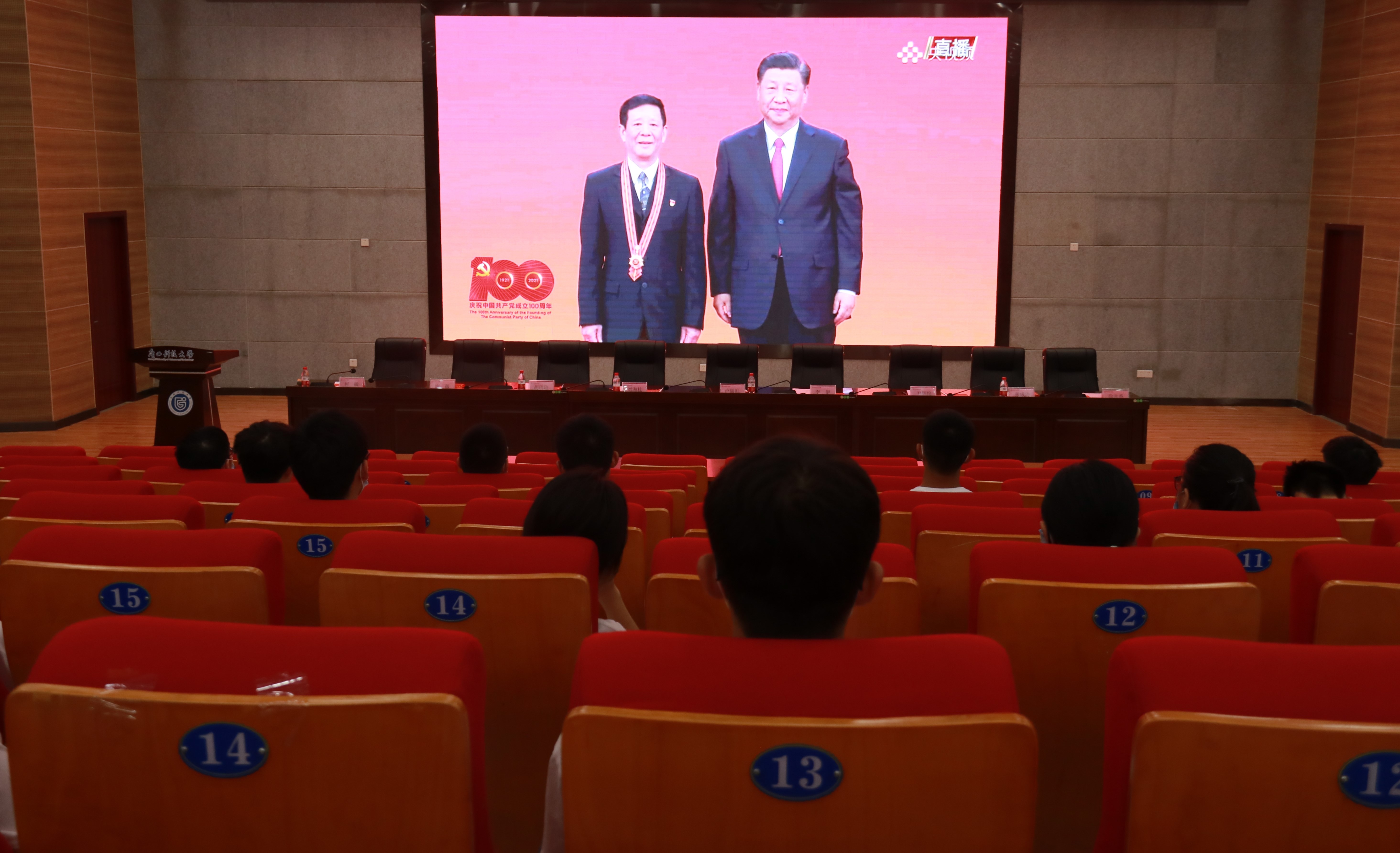 6月29日,机械与交通工程学院组织200多名师生党员在柳东校区多功能报告厅T1-303集中观看在人民大会堂隆重召开的《庆祝中国共产党成立100周年——“七一勋章”颁授仪式》直播。