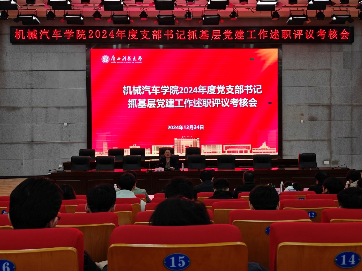 12月24日下午,机械汽车学院2024年度党支部书记抓基层党建工作述职评议考核会在柳东校区多功能报告厅举行。会上,学院20位党支部书记逐一进行了述职。何敏对各支部书记进行了现场点评。