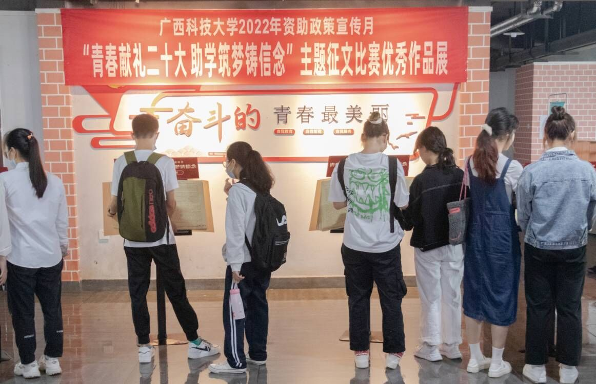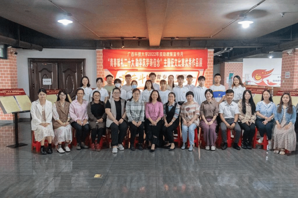 为积极营造喜迎党的二十大胜利召开的浓厚氛围,培育受助学生的爱党爱国情感和感恩意识,进一步推进我校家庭经济困难学生资助政策宣传,更好地宣传受助学生成长成才的先进事迹,5月26日上午,我校在柳东校区学生教育管理服务中心(“一站式”学生社区)举办了2022年“青春献礼二十大 助学筑梦铸信念”主题征文比赛颁奖典礼暨优秀作品展,活动由校学生资助管理中心主办,机械与汽车工程学院承办。机械与汽车工程学院党委书记卢丽虹,学工部(处)副部(处)长、学生资助管理中心主任林爱华,马克思主义学院党总支副书记夏辛萍,学生资助管理中心副主任蓝凌霄、高小尧以及本次征文比赛的获奖学生和指导老师代表参加了本次活动。