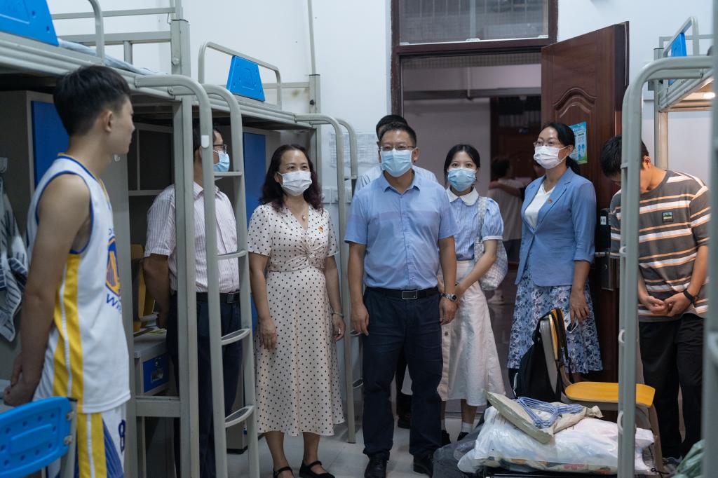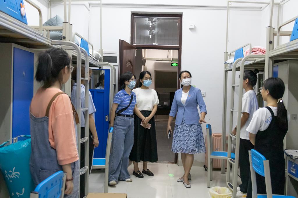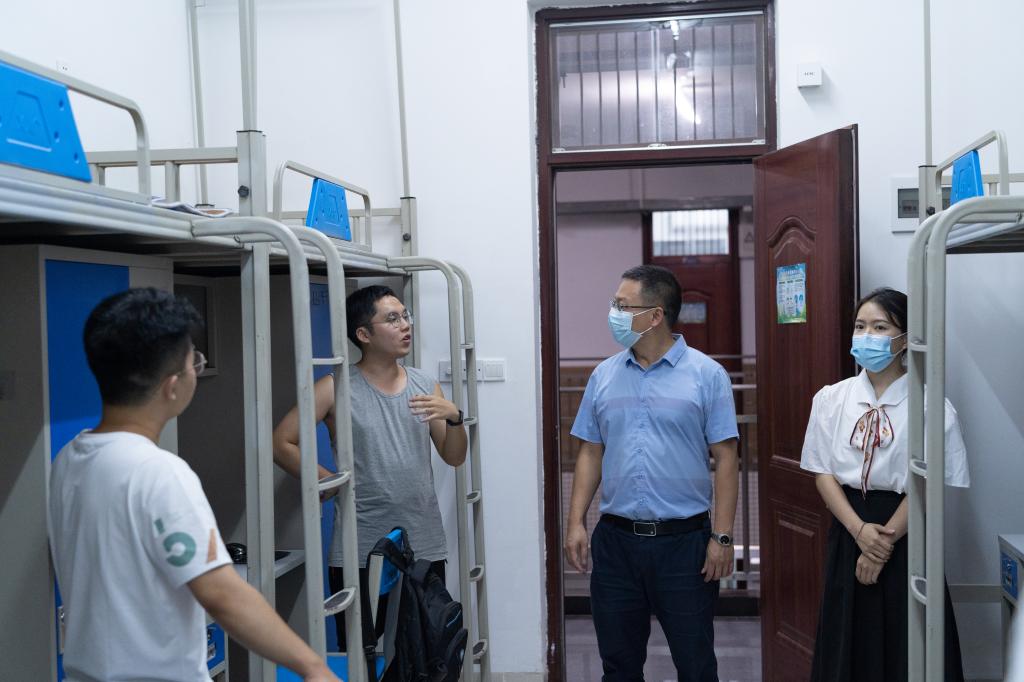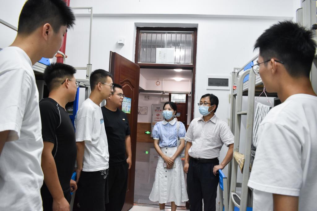 每到一间宿舍,学院领导亲切地与同学们聊起家常,询问他们的家乡、到校后的感受以及兴趣特长等方面的情况,并对同学们关心和提出的问题一一作出了解答,提醒同学们要保管好个人贵重物品,提高安全意识,遵守学校疫情防控要求;希望同学们能尽快转变角色,适应大学校园生活,以奋发向上的姿态迎接崭新的人生征程。同时,还给同学们介绍了学院在科技创新、就业创业、学生社团活动等方面取得的成绩,勉励大家要明确目标,做好学业规划,积极参加各种实践活动,提升综合能力,用努力奋斗去实现自己的人生目标和理想。