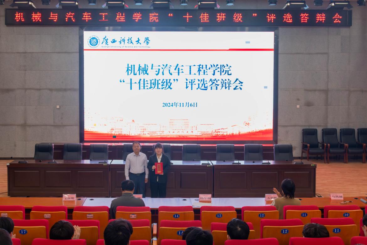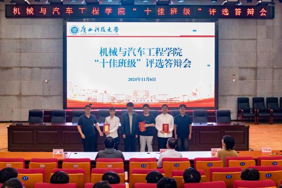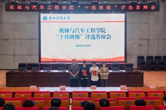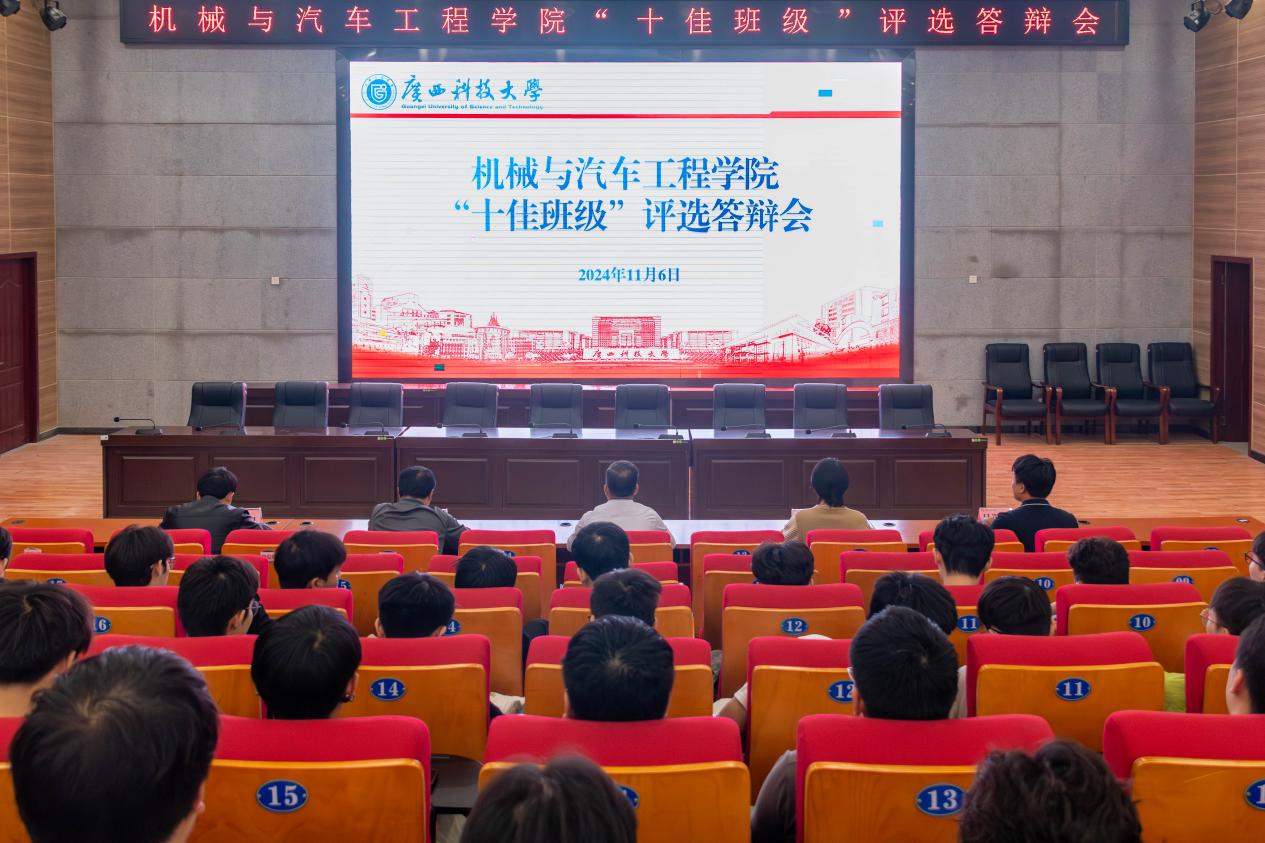 11月6日,机械与汽车工程学院在柳东校区报告厅开展“十佳班级”评选推选答辩会,机械与汽车工程学院副院长杨年炯、辅导员刘文艺、古思敏、王佳明、马凯越作为评委老师出席答辩会。答辩会由辅导员曲信儒主持。