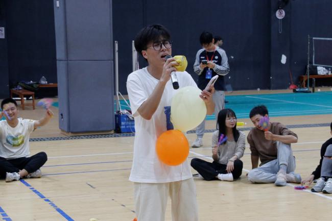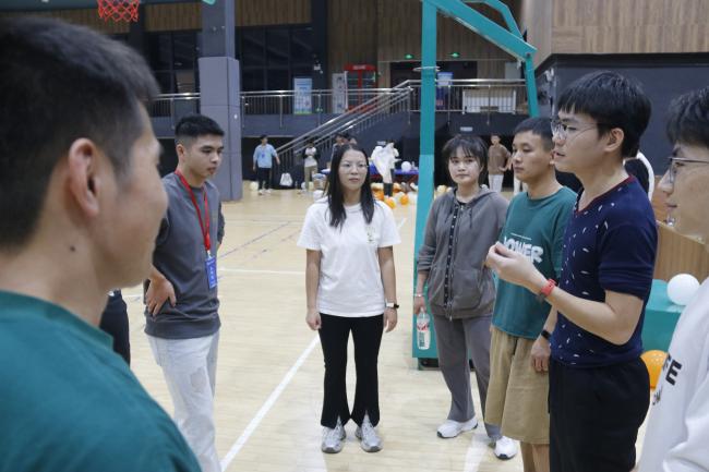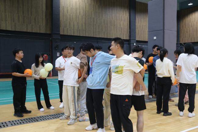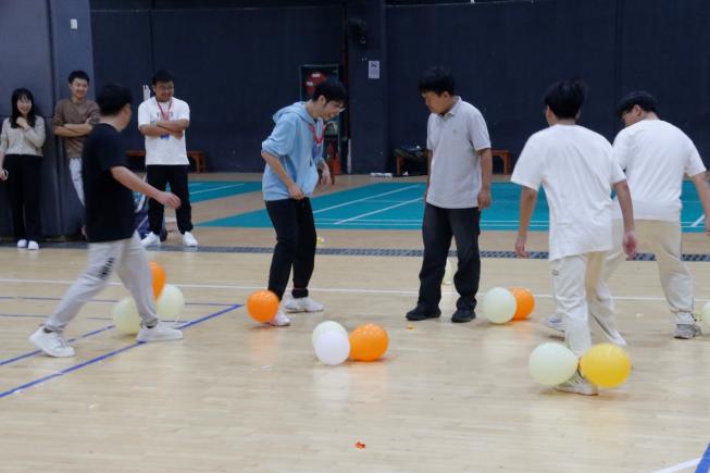 在主持人的引导下,同学们积极参与了“数字炸弹”“丢沙包攻守战”“背运气球”“气球破冲大作战” “听歌识曲”等素质拓展活动,大家分工协作,默契配合,充分展现了学院研究生干部的团队协作精神。