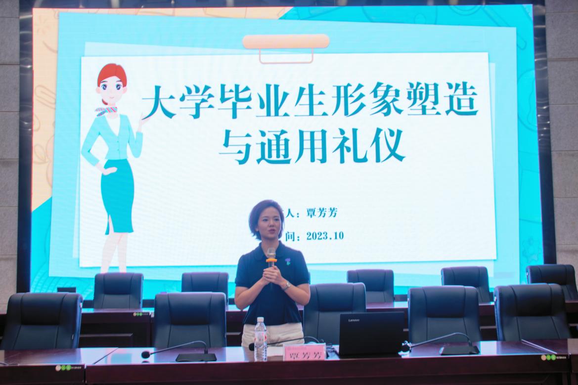 讲座上,覃芳芳从礼仪文化、职业形象、举止礼仪、社交礼仪、沟通礼仪、接待礼仪等六个方面,用风趣的语言深入浅出地为大家讲解了日常工作和生活中需要注意的礼仪知识和文化修养。覃芳芳结合自己的工作经验以及学生常见的礼仪误区,为同学们带来一场实用性很强的美育讲座,她希望同学们能从自身做起,学以致用,带头倡导文明礼仪规范,不断提高自身文明素养,树立优秀大学生良好形象。在求职找工作中做到积极主动、文明待人,在生活中做到以礼待人、明礼守信。