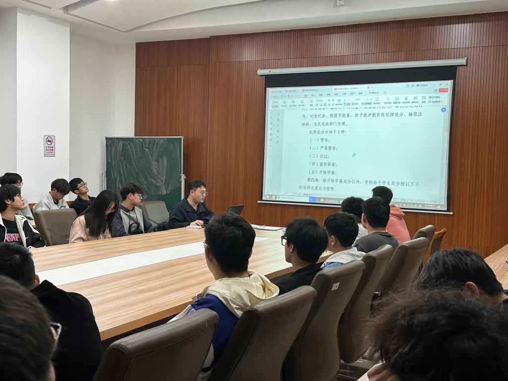 4月2日,机械与汽车工程学院在一站式服务大厅开展召开班长联席会,曲信儒老师在会中与各班班长学习宿舍管理相关办法以及与涉及宿舍管理的相关纪律处分规定。会上,曲信儒老师详细解读了宿舍日常行为规范,包括作息时间、卫生标准、用电安全等方面的具体要求。同时,针对涉及宿舍管理的相关纪律处分规定进行深入讲解,列举了一系列因违反宿舍规定而受到处分的典型案例,强调了遵守宿舍纪律的重要性。