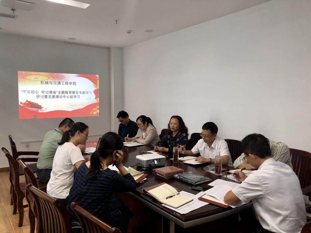 10月21日,机械与交通工程学院党委“不忘初心、牢记使命”主题教育第五次专题学习研讨暨党委理论学习中心组专题学习会在柳东校区L1-506会议室召开,学院领导班子成员卢丽虹、李健、何敏、刘湘桂、尹辉俊、孙有平,学院党委理论学习中心组全体成员参加了会议。本次学习研讨的主题为“学先进找差距、受警示存戒惧”。会议由学院党委书记卢丽虹主持。
