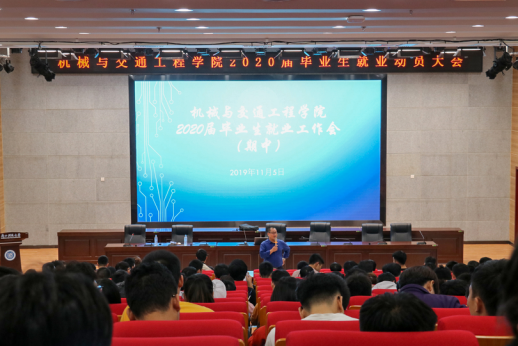 11月5日晚19:00,机械与交通工程学院在柳东校区T1-303报告厅召开了2020届毕业生期中就业工作会。机械与交通工程学院党委副书记刘湘桂、2016级年级辅导员安红忠和2016级全体毕业生参加了动员会。会议由安红忠主持。