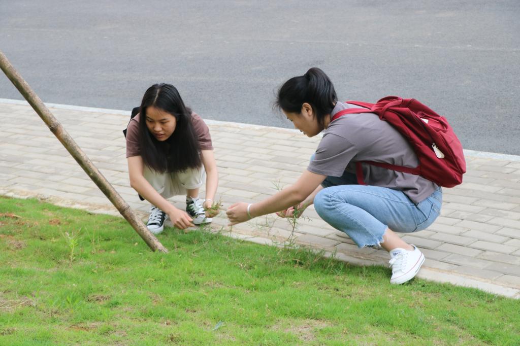活动伊始,青年志愿者们个个热情高涨地来到校园的草坪,团队分工明确,认真负责,一个个半躬半蹲的身影出现在这片绿油油的草坪中。大家挥汗拔草,任劳任怨,整个劳动场面热火朝天,都完全投入到了拔草当中,毫不在意手上沾满了又黑又黏的草汁与泥土。柳东校区草坪虽大,但青年志愿者的干劲更大,经过一下午的连续奋战,校园面貌焕然一新,看着自己拔出的一堆堆杂草,想着自己劳动换来的一个干净、整洁、舒适的校园,青年志愿者们挂着汗水的脸上露出了开心的笑容。