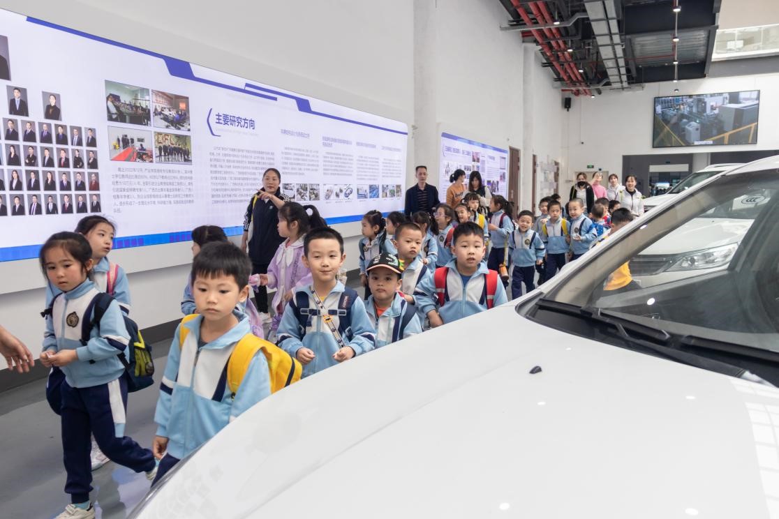 4月26日上午,广西科技大学附属幼儿园组织200多名小朋友走进机械汽车学院“交通运输科普基地”开展参观学习活动。
