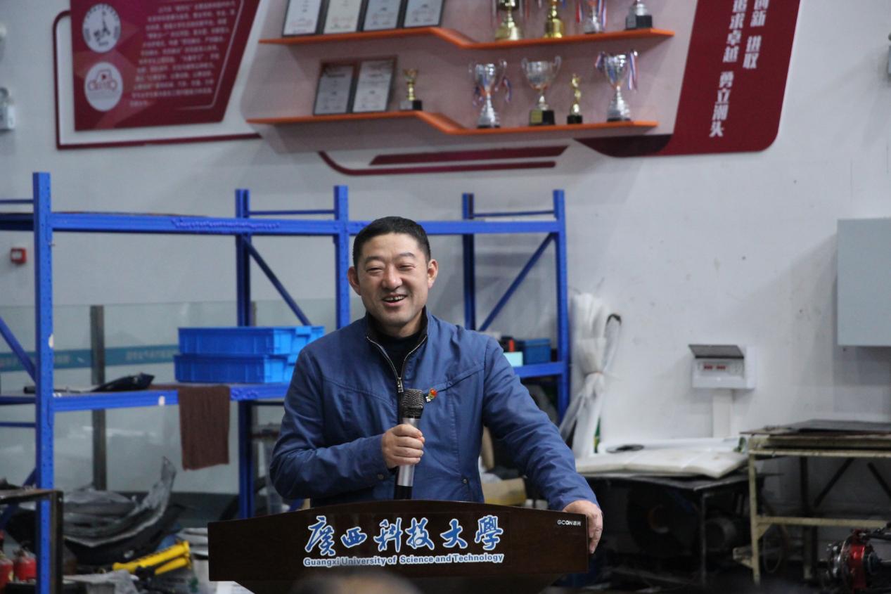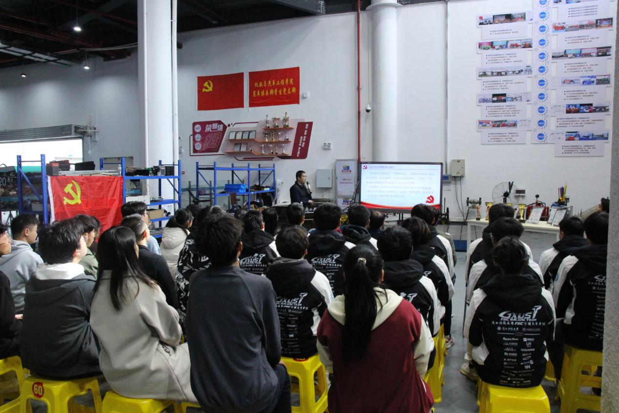 12月6日下午,机械与汽车工程学院在柳东校区综合实验楼赛车俱乐部车间开展了赛车俱乐部学生党支部和交通运输专业学生党支部联合主题党日活动,学校党委副书记、校长刘宝臣出席活动,学院党委书记何敏、交通专业学生党支部书记谢鹏鹏以及车队指导老师参加了活动,两个学生党支部党员、入党积极分子、车队队员代表参加了活动,活动由学院党委副书记、纪委书记李辉主持。