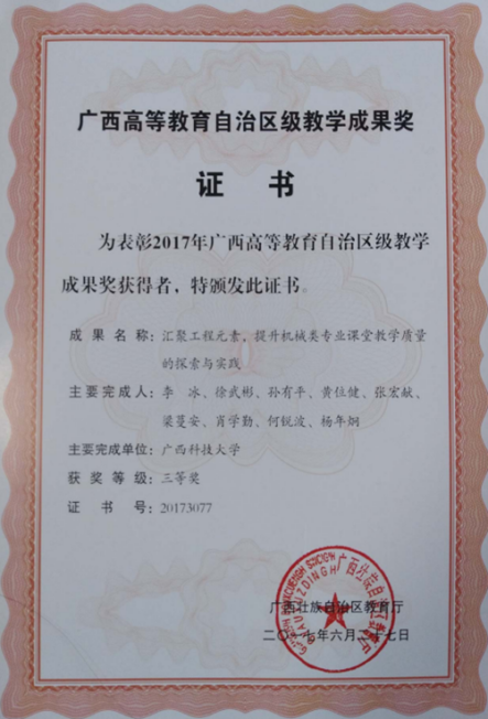 机械工程学科是广西一流学科,博士学位授权点立项建设学科。在2021年广西首轮一流学科终期评审中获A档(排名第一)。