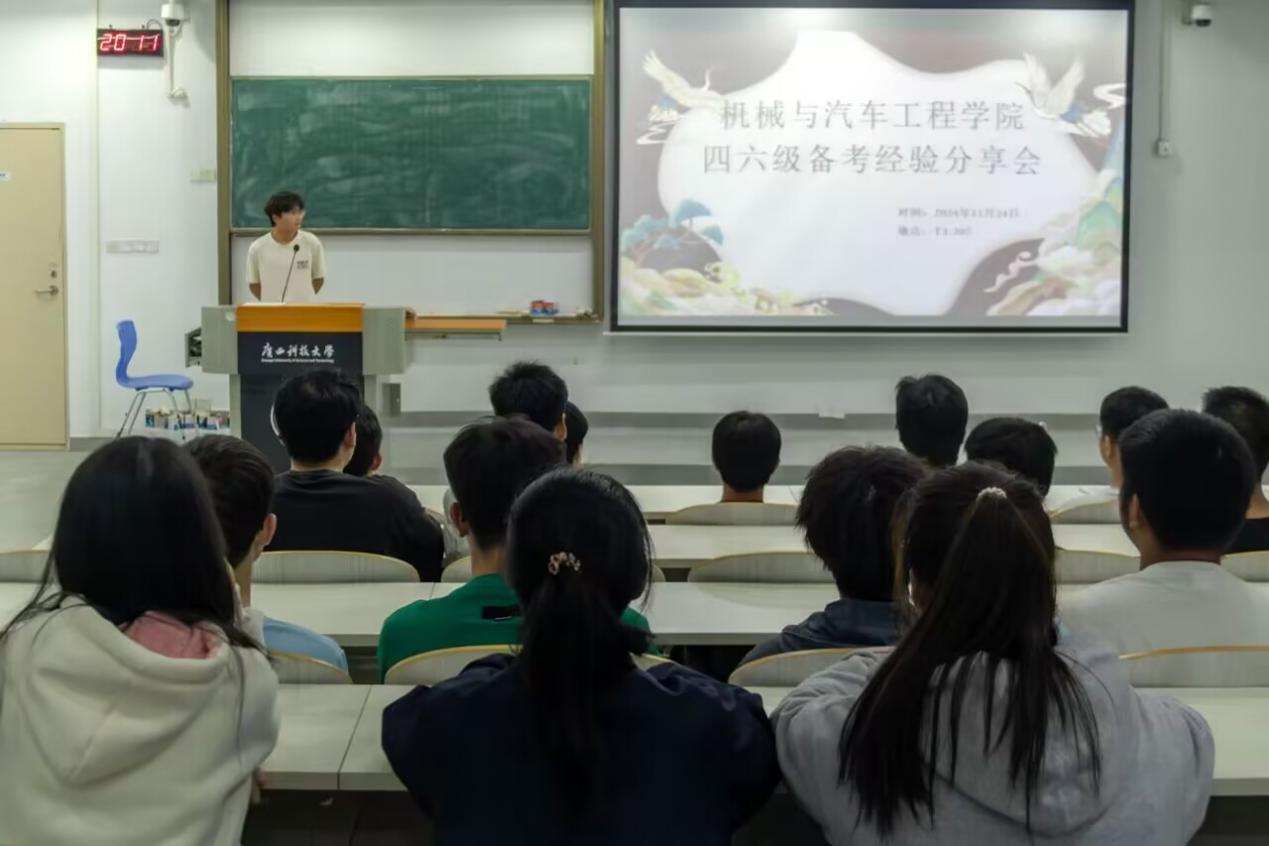 11月24日,机械与汽车工程学院在T3-307开展了英语四六级备考经验分享交流会。学院各班学生代表参加了交流会,会议由学生团委副书记朱嘉琳主持。