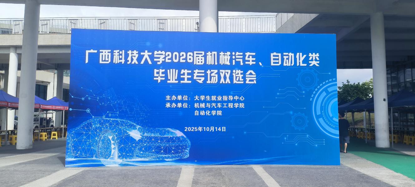 为进一步促进毕业生高质量充分就业,搭建用人单位与毕业生高效双向选择平台,10月14日下午,由机械与汽车工程学院、自动化学院共同承办的“广西科技大学2026届机械汽车、自动化类毕业生专场双选会”在柳东校区南广场顺利举行。本次双选会共吸引50余家用人单位进校招聘,带来就业岗位3600余个,吸引1200余名毕业生到场参与。学校对本次双选会高度重视,学校党委副书记宾月景亲临现场,与用人单位亲切交流,详细了解企业岗位需求,为毕业生提供就业指导。