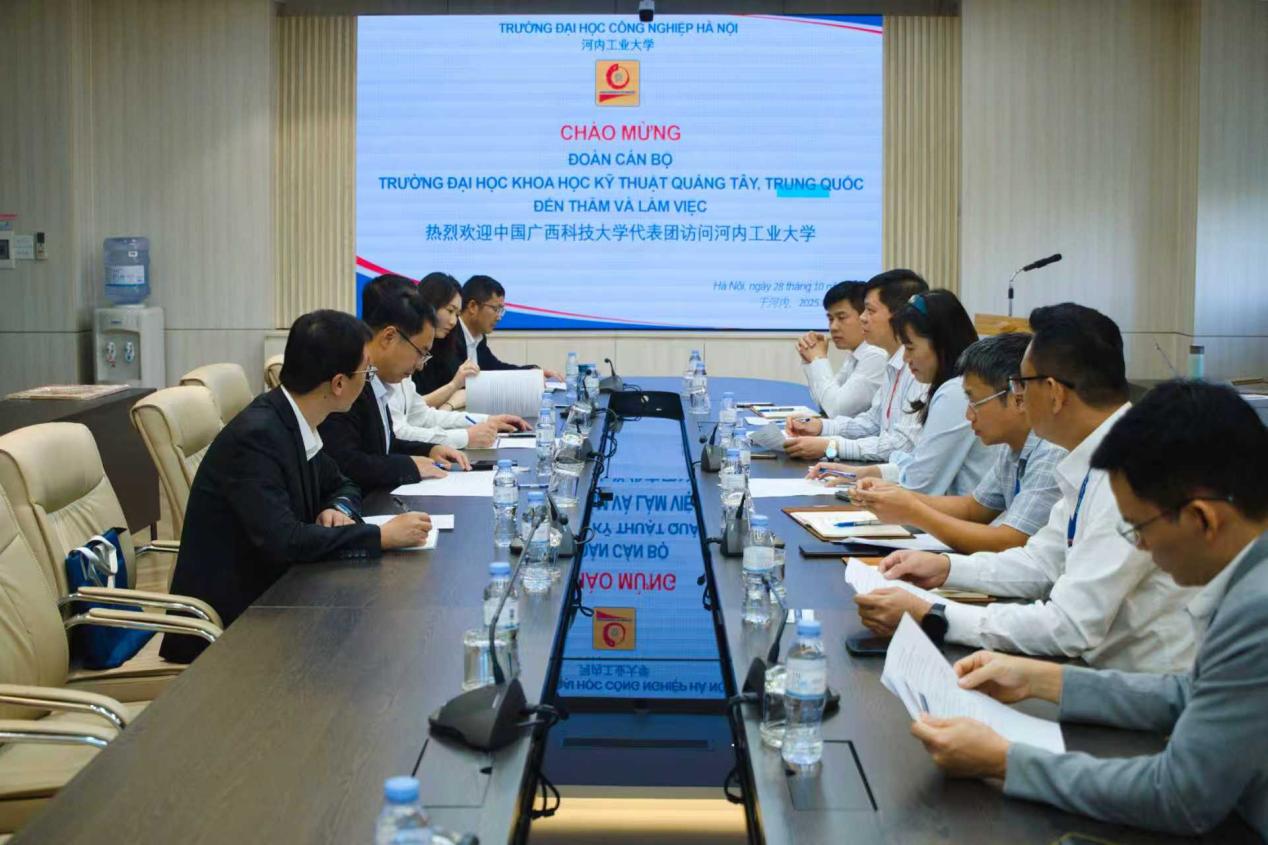 在河内工业大学,受到范文东副校长及机械与汽车学院、国际交流处等部门负责人的热烈欢迎。双方回顾了长达十一年的合作历程与成果,围绕新能源汽车专业人才培养、教材共建、教师互访及科研合作等议题展开深入交流,并就具体合作内容与模式达成初步共识。会后,代表团看望了正在河内工业大学访学的30多名我校研究生与本科生,了解大家的学习与生活近况。