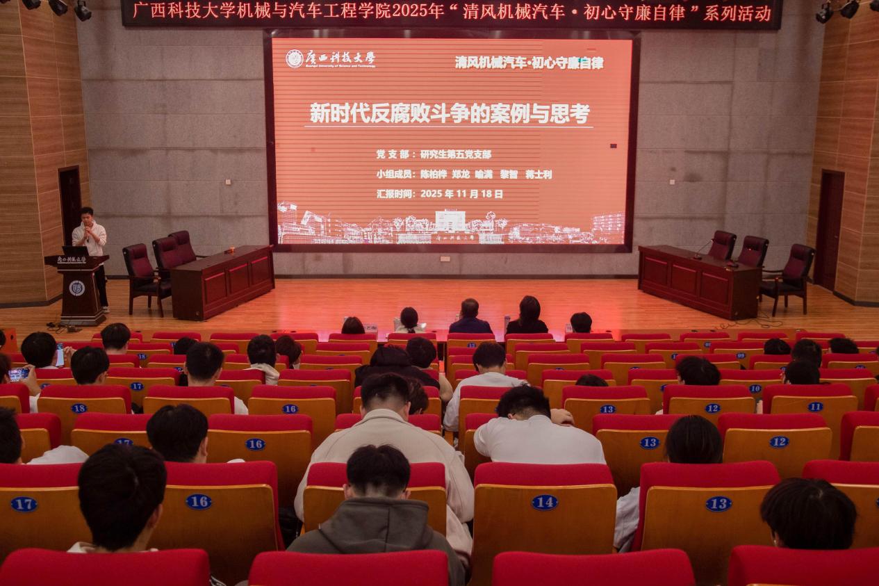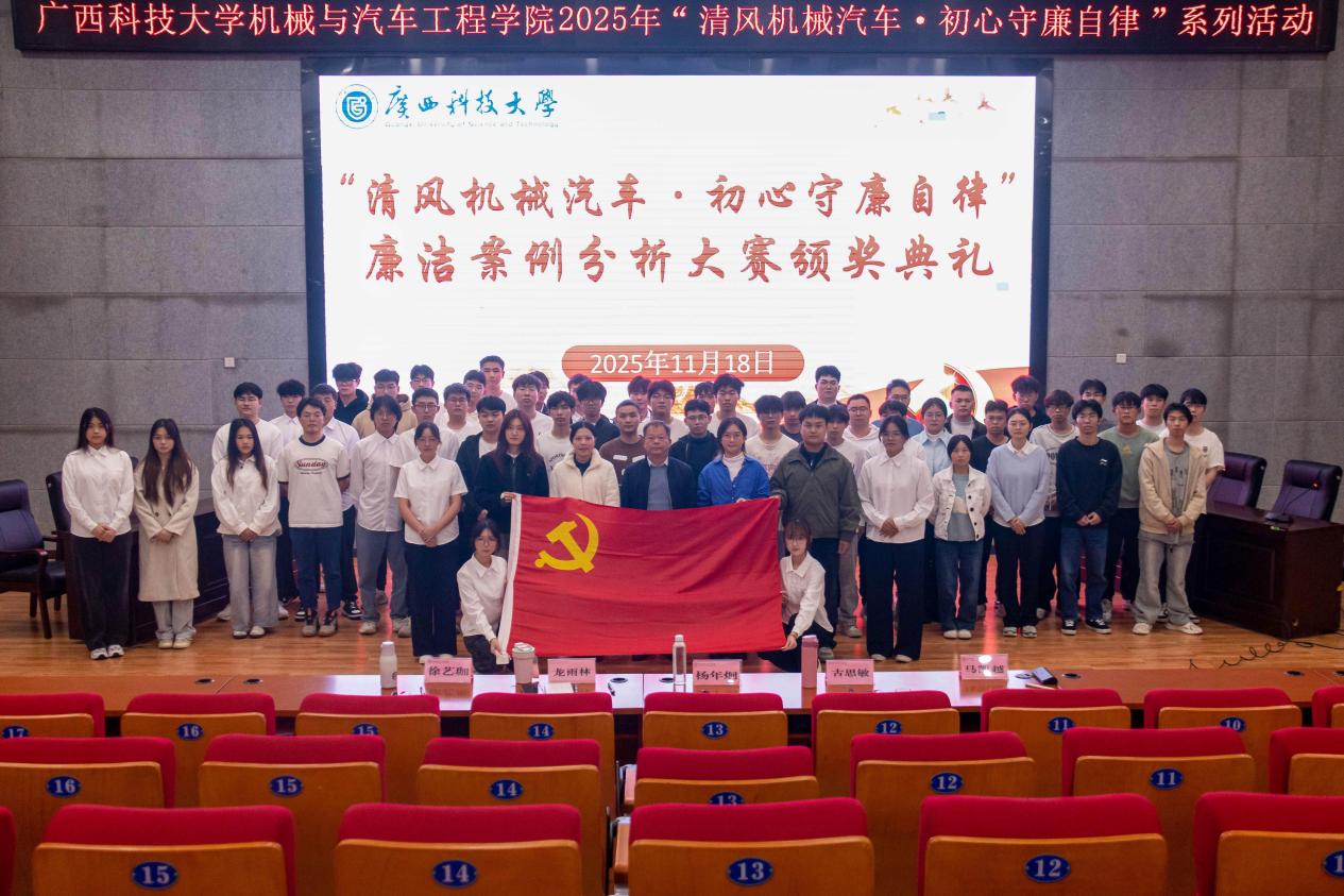 11月18日下午,机械与汽车工程学院2025年“清风机械汽车 初心守廉自律”系列活动之廉洁案例分析大赛在柳东校区T1-303多功能报告厅圆满结束。学院党委副书记、纪委书记杨年炯,辅导员古思敏、龙雨林、马凯越、徐艺珈到场担任评委。