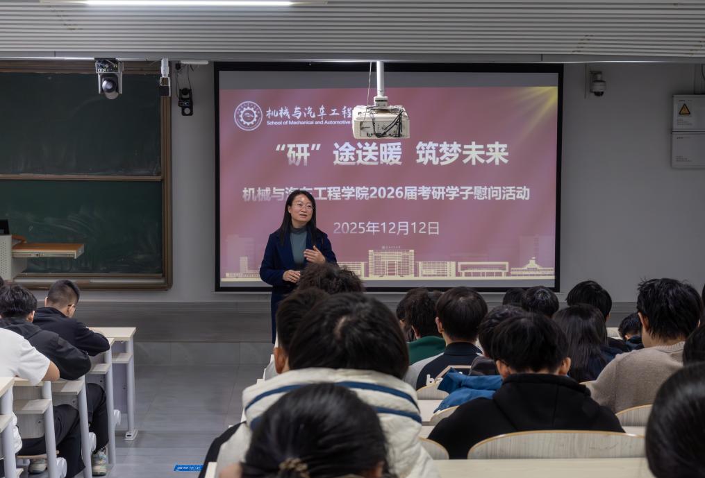 2025年12月12日,机械与汽车工程学院举办 “研途送暖,筑梦未来” 考研学子慰问活动。学院党委书记何敏,党委副书记、纪委书记杨年炯,辅导员燕四伟出席,全体2026届考研学子参加。活动由辅导员唐艳红主持。